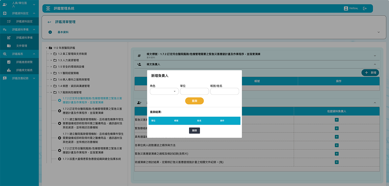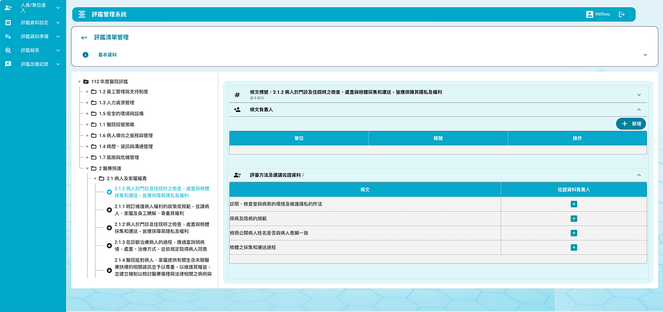 除了醫療機構的評鑑管理,許多企業都需要取得ISO相關認證。我們依據不同類型的評鑑與認證條紋設計一套管理系統,建立所有對應的條文,讓使用者可以快速將佐證資料整合與條文相呼應,再搭配指標系統的量性佐證,讓審查人員一目了然。評鑑管理系統不僅適用於醫療機構,還可在教育、食品和製造等行業中發揮關鍵作用。教育行業中,它協助學校應對教育部門和獨立評鑑機構的審核要求;在食品行業中,幫助生產商確保產品符合食品安全法規和質量標準;在製造業中,它有助於企業跟蹤供應商的產品質量和生產流程。這些系統將協助企業提高管理水平,確保符合相關的行業標準和要求。